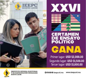 O Instituto Eleitoral Estadual de Nuevo León, no México, está com inscrições abertas para o 26º Concurso de Redação Política. A iniciativa tem o objetivo de promover reflexões críticas sobre temas políticos e sociais relevantes na América Latina, incentivando a participação de estudantes e docentes de toda a região.