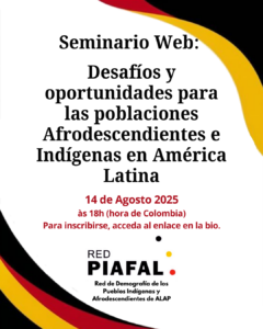 El evento forma parte de la serie de encuentros “Desafíos y oportunidades para las poblaciones afrodescendientes e indígenas en América Latina”, un espacio de diálogo y difusión de investigaciones que abordan las desigualdades enfrentadas por estos grupos, la producción de datos y el acceso a derechos.
