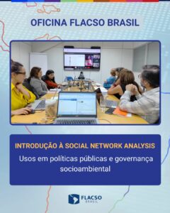 A Flacso Brasil realiza hoje a Oficina de Introdução à Social Network Analysis: explorando os seus usos em políticas públicas e processos de governança socioambiental. A oficina é voltada a pesquisadores da área das ciências sociais interessados em explorar aplicações da Social Network Analysis em suas investigações.
