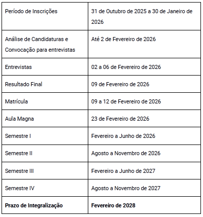 O processo de seleção consiste na análise de CV e projeto de pesquisa, seguido de entrevista online.